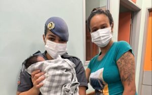 Após o parto, a família foi acompanhada pelos policiais até o hospital, onde mãe e filho permaneceram sob cuidados médicos